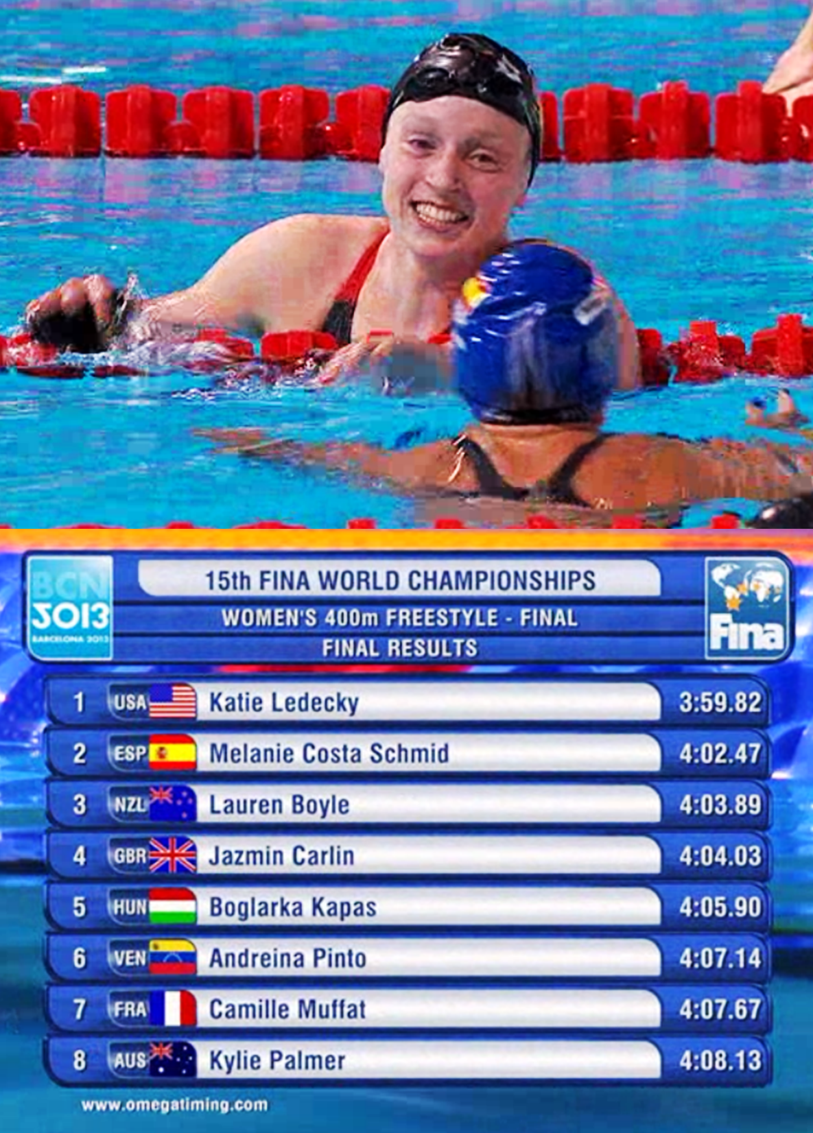 Alzi la mano chi non si è divertito nel vedere la Ledecky nuotare sotto i 4 minuti!