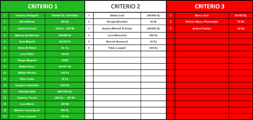 Oltre i 3 criteri sopra elencati ci sono poi i tempi limite che sono conseguibili durante il 9° GRAN PREMIO D’ITALIA a VIAREGGIO in programma dal 22 al 24 Novembre, qui la pagina dell’evento su swimmingchannel.it e qui il sito in allestimento della manifestazione.