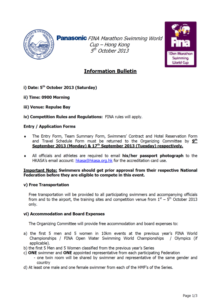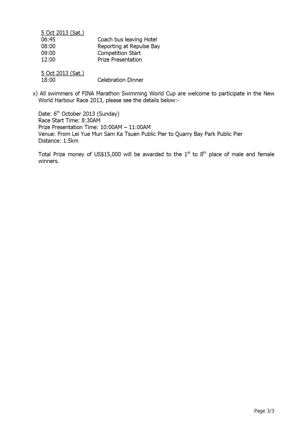 FINA 10km Marathon Swimming World Cup 2013 – 5 October – Hong Kong (HKG)