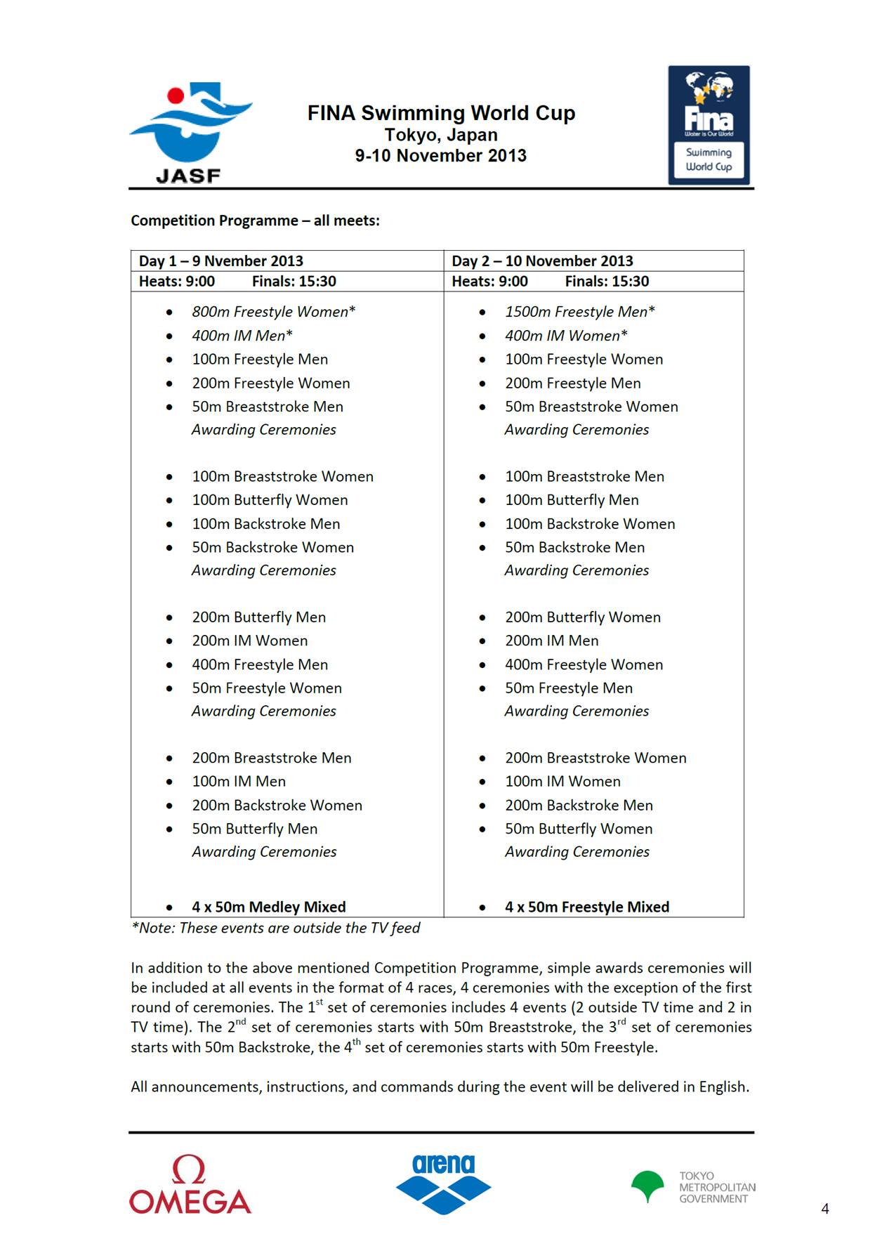 Qui il FINA Swimming World Cup 2013 – Tokyo (JPN) – Info Bulletin con tutte le indicazioni del caso ed ecco i premi!