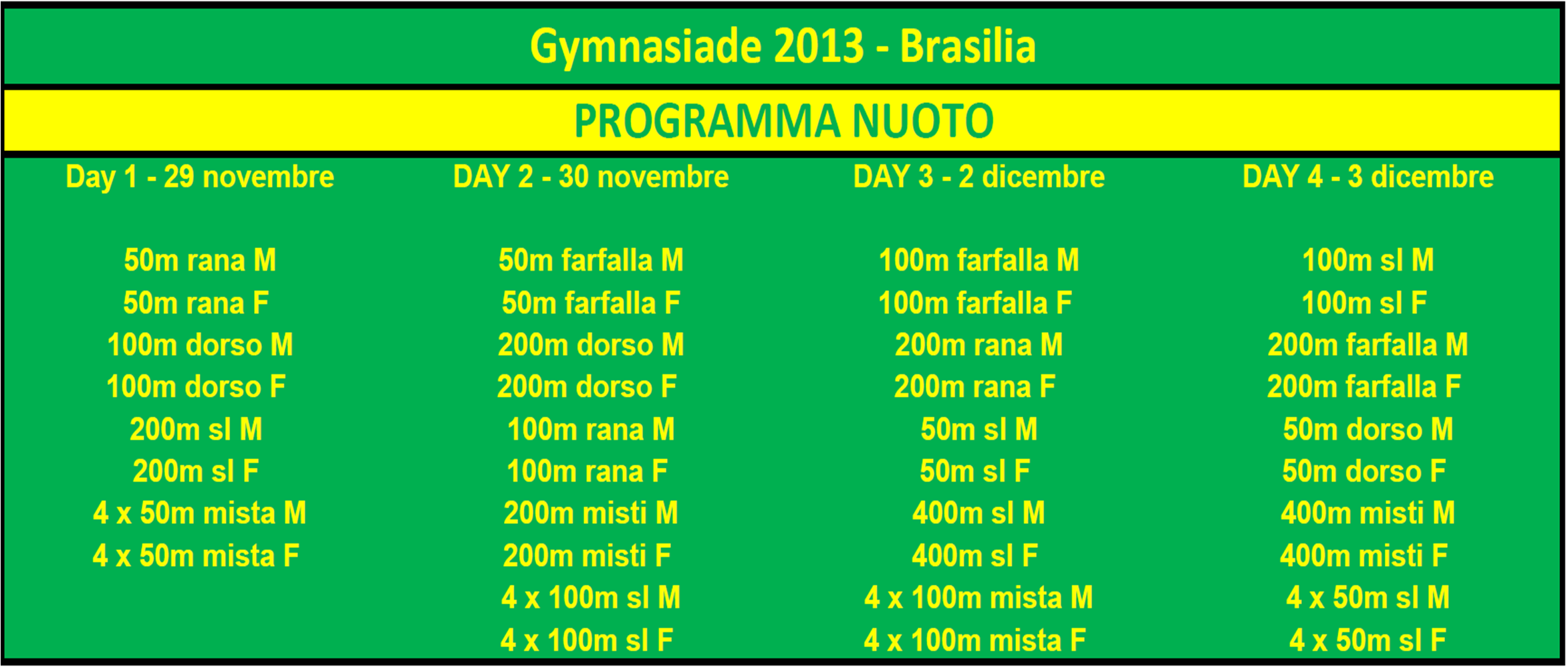 Il programma di nuoto inizierà il 29 novembre e durerà 4 giornate, eccolo!
