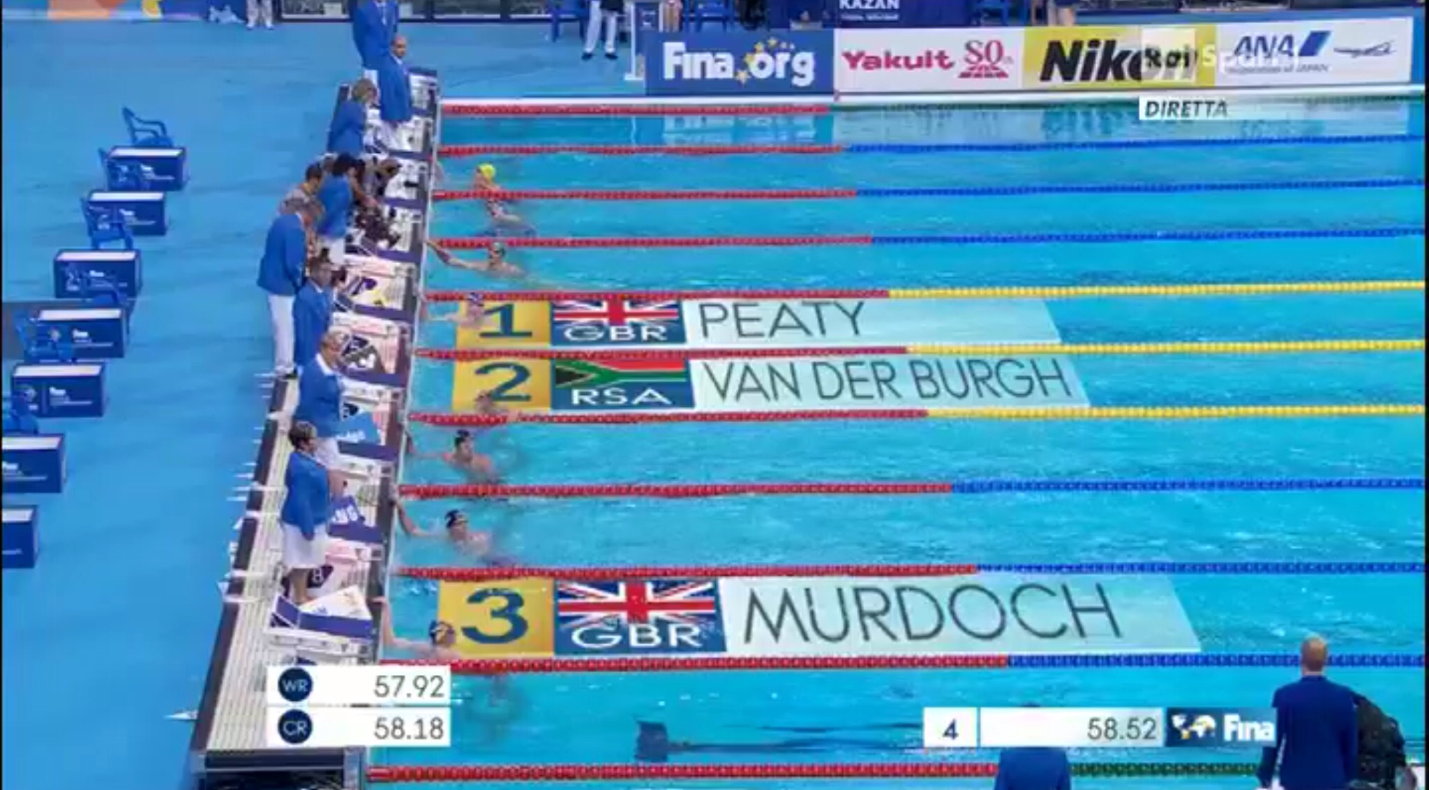 Passaggio sotto il record del mondo per Cameron Van Der Burg ma un rientro all’ultima bracciata consegna la medaglia d’oro ad Adam Peaty! Sul podio il suo compagno di nazionale Murdoch!