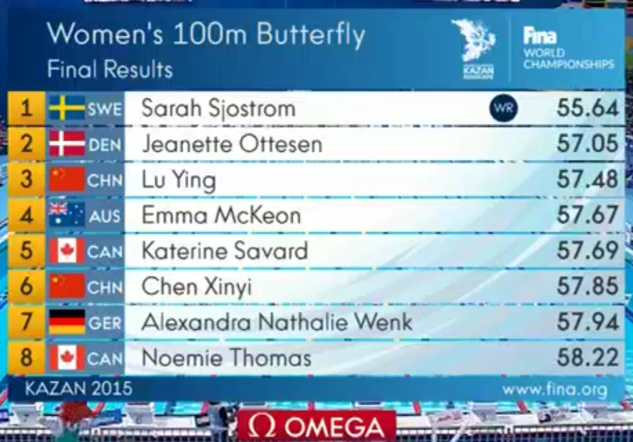 Straordinario record del mondo di Sarah Sjiostrom! 55.64! Senza storia!