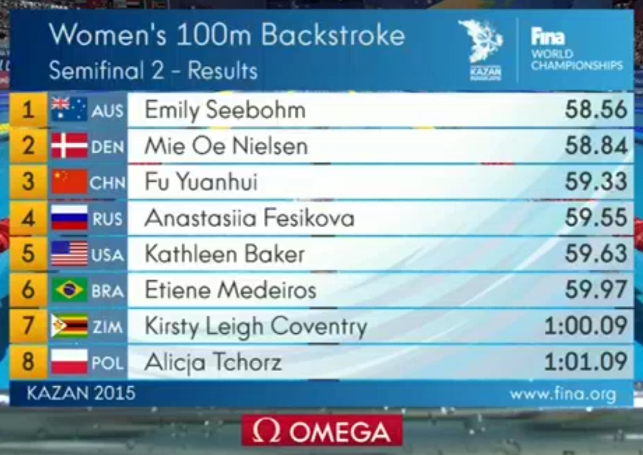 La Efimova vola a 1.05.60 seguita dalla Meilutyte in 1.05.64!
