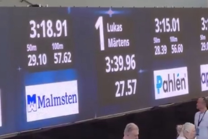 Dopo quasi 16 anni, è stato superato il record mondiale nei 400 stile libero di Paul Biedermann (3:40.07), stabilito nel 2009 con un costumone. Lukas Märtens, 23 anni, ha nuotato un impressionante 3:39.96 allo Stockholm Open, migliorando di 0.11 il vecchio primato. Prima di questa impresa, il tedesco era già il quarto più veloce di sempre sulla distanza.