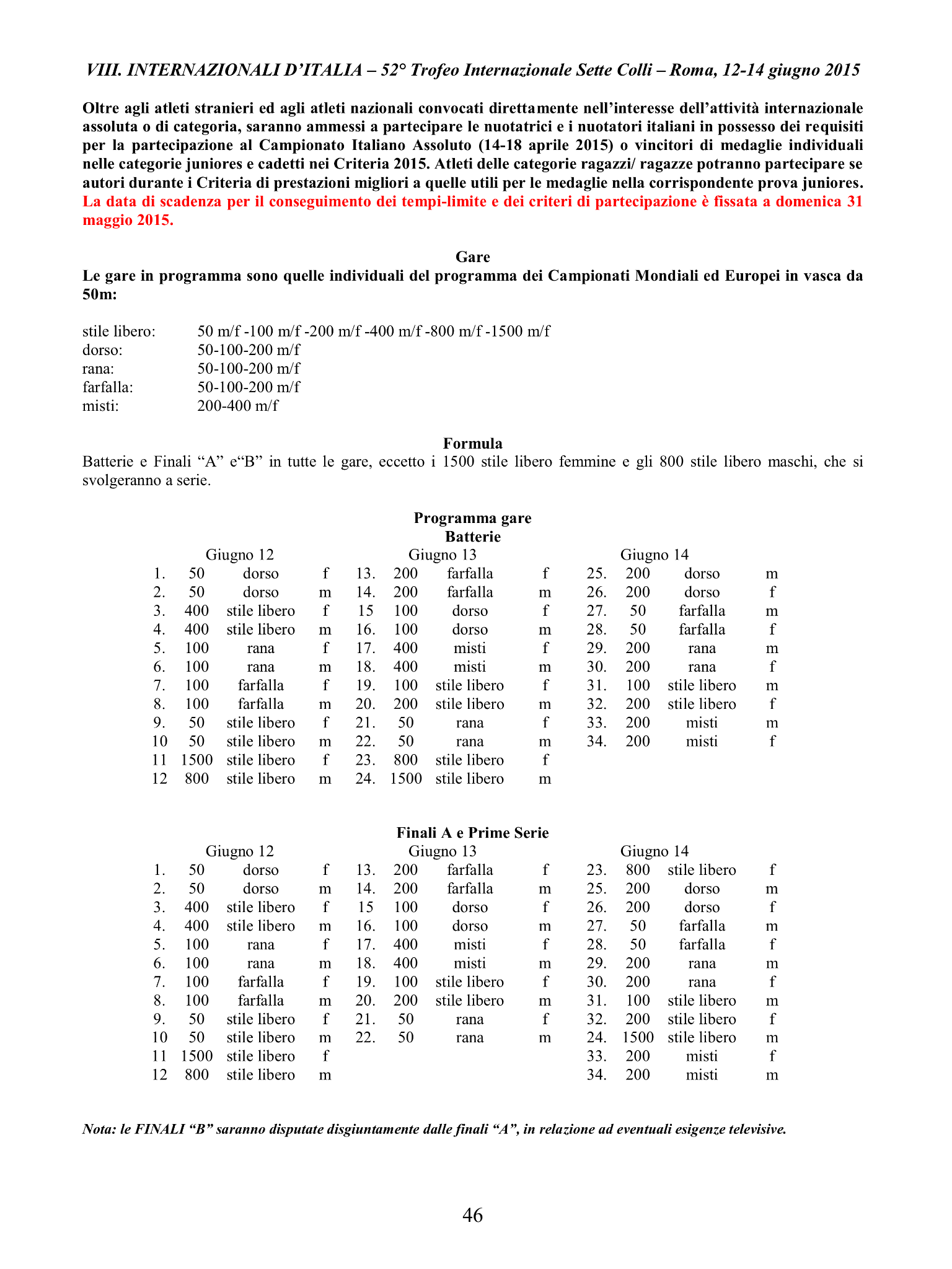 È ormai prossima la stagione estiva, fatta di sempre più frequenti gare in vasca lunga, allenamenti all’aperto e tra le manifestazioni più “calde” dell’estate non può che esserci il 7Colli-Internazionali di Roma!